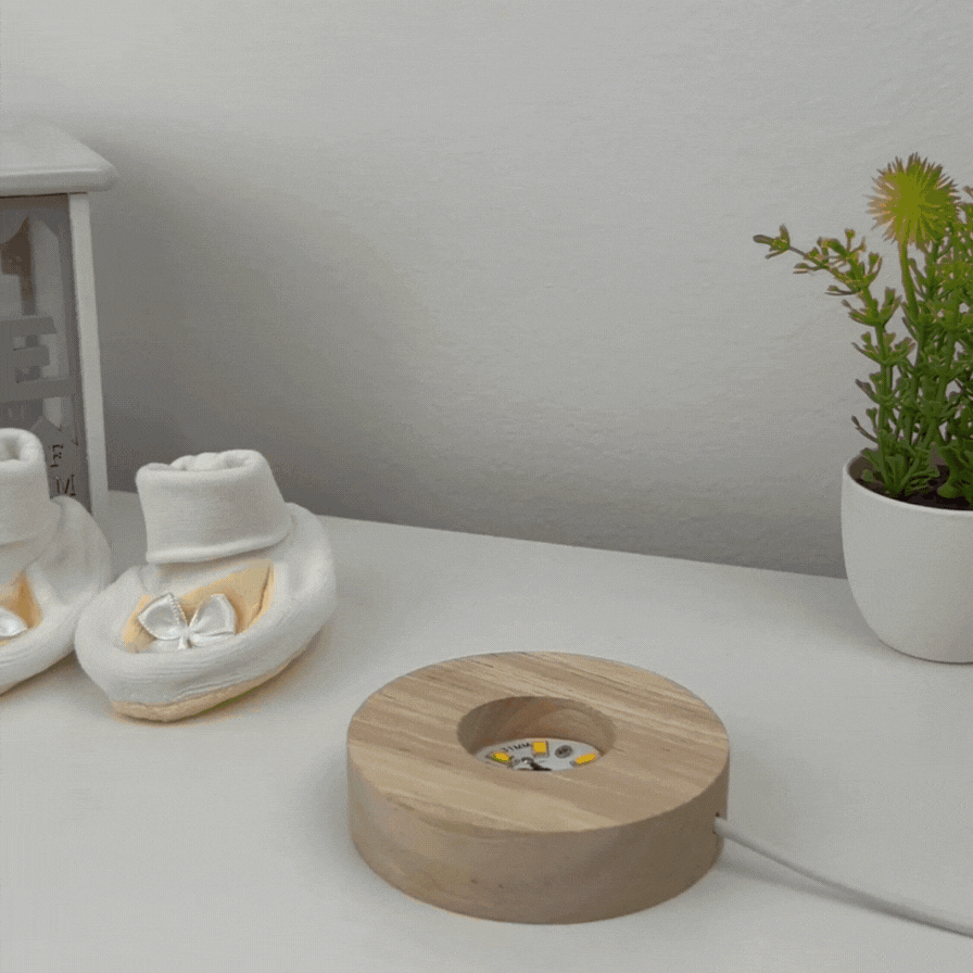 - Fából készült LED-es talp, meleg fehér fényhatással